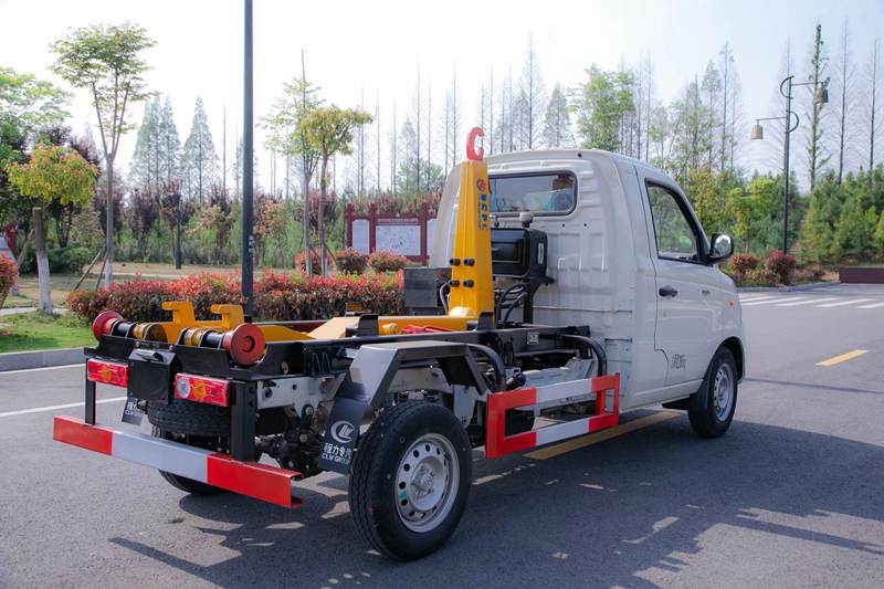 CLW5030ZXXB5車廂可卸式垃圾車,福田馭菱3方勾臂垃圾車,福田馭菱1475車身,配柳州五菱汽油發動機LJ456Q-2AE 45KW/61馬力,五檔變速箱,3噸后橋,165/70R13真空胎,110大梁。福田馭菱勾臂垃圾車具有結構簡單、操作穩定方便、裝卸效率高、機械化程度高、節省人力的優點。