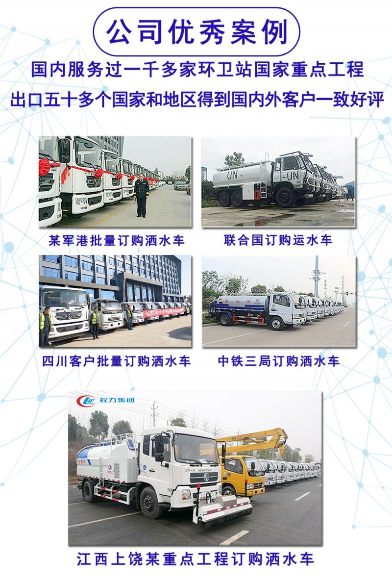 特別說明:程力灑水車全系產(chǎn)品全國(guó)范圍內(nèi)都可以送車上門,客戶滿意后再付清余款。聯(lián)系電話:15072966622 周經(jīng)理