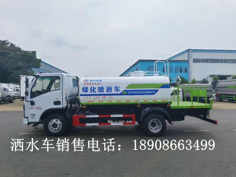 罐體有效容積5立方,罐體采用國(guó)標(biāo)Q235碳鋼,罐體厚度4mm,自吸自排水泵,帶前沖裝置,后灑裝置,左右側(cè)噴裝置,尾部帶有安全操作平臺(tái),帶消防接口,自流口,兩根輸水管,尾部綠化高炮,綠化高炮可調(diào)節(jié)直沖,大雨,中雨,毛毛雨霧,可以連續(xù)調(diào)節(jié),360度旋轉(zhuǎn);