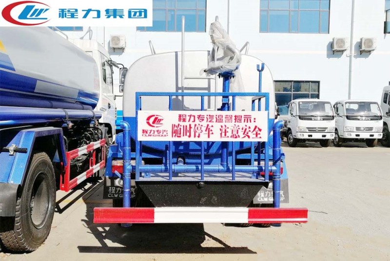 上裝配置:罐體有效容積6-10立方,罐體采用國(guó)標(biāo)Q235碳鋼,罐體厚度4mm,自吸自排水泵,帶前沖裝置,后灑裝置,左右側(cè)噴裝置,尾部帶有安全操作平臺(tái),帶消防接口,自流口,兩根輸水管,尾部綠化高炮,綠化高炮可調(diào)節(jié)直沖,大雨,中雨,毛毛雨霧,可以連續(xù)調(diào)節(jié),360度旋轉(zhuǎn);