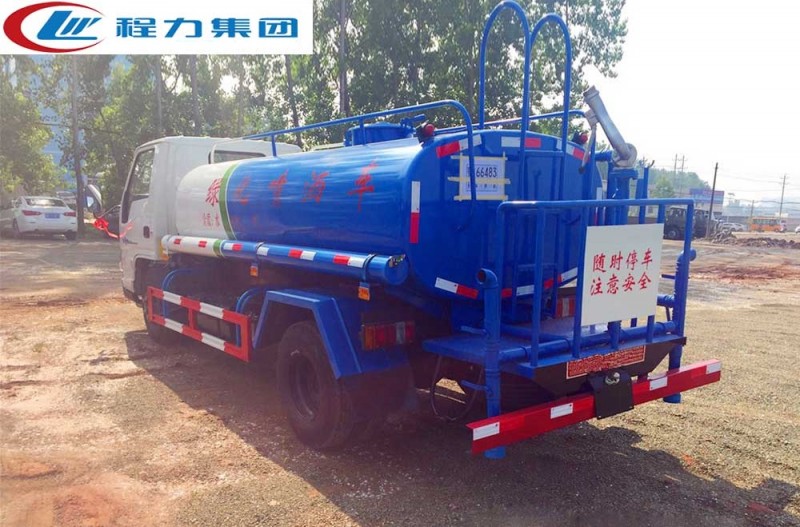 罐體有效容積4.5立方,罐體采用國標(biāo)Q235碳鋼,罐體厚度3mm,自吸自排水泵,帶前沖裝置,后灑裝置,左右側(cè)噴裝置,尾部帶有安全操作平臺,帶消防接口,自流口,兩根輸水管,尾部綠化高炮,綠化高炮可調(diào)節(jié)直沖,大雨,中雨,毛毛雨霧,可以連續(xù)調(diào)節(jié),360度旋轉(zhuǎn);