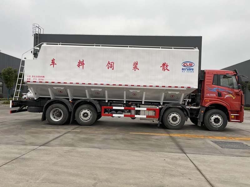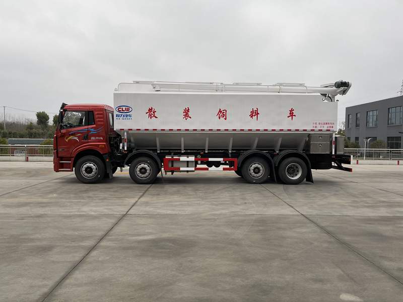 解放前四后六散裝飼料運輸車,CL5315ZSL6SS悍V平地板高頂全浮駕駛室(四點空氣懸置),大柴CA6DK1-32E6,一汽CA10TAX130M(半鋁殼),457升級沖焊橋(速比4.444),295/80R22.5-16層級,其他:飼料車專用底盤,空調,電動門窗,電動舉升,中控鎖,帶進口ABS,板簧10/10/6+-/10+9,北斗+GPRS行車記錄儀,前下防護,220V電源+巡航系統,限速89KM/H,前盤后鼓制動器,400L油箱,40L尿素箱,多功能方向盤,真皮通風座椅(腰托、扶手),雨眉,帶取力器及控制機構
