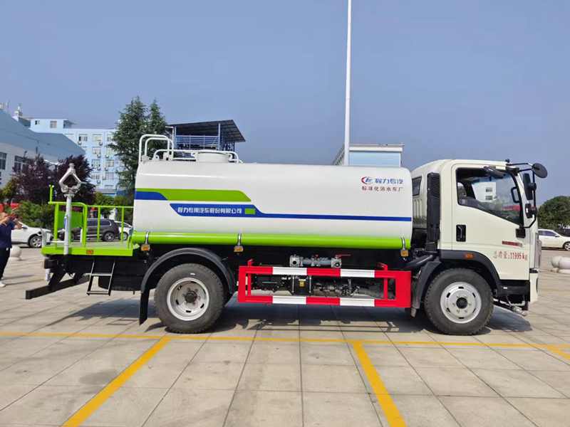上裝配置:全新3.0版本涂裝,罐體容積9.7方,材質:罐體采用Q235,隔板厚度4mm,罐體碳鋼厚度4mm,封頭厚度4mm.大口徑直通球閥,可選裝鋁合金三通,加粗主管道(76)灑水功能、前沖、后灑、測噴、標配60/90大功率灑水泵,可自吸自排,帶消防接口。