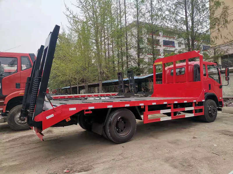 這臺東風(fēng)華神D912平板拖車,采用玉柴四缸160馬力,8檔變速箱,9噸后橋,8.25R20鋼絲胎。整車長8.1米,平板面可達(dá)5米,非常適合運輸130以下的挖掘機。