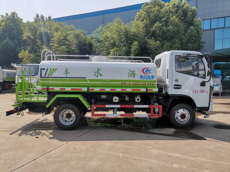 5方東風灑水車,整車型號:CLW5070GPSD6,底盤配置:3308軸距,全柴136馬力發動機,萬里揚六檔變速箱,電動門窗,原廠空調,中控鎖,ABS,方向助力,斷氣剎,7.00R16鋼絲胎,前橋1.5T,后橋3.5T.上裝配置標配:罐體采用武鋼優質碳鋼Q235-B型材質,罐體厚度國標:4MM,專用功能:整車帶前沖(噴)、后灑、帶側噴(花灑)、帶后工作平臺、平臺上安裝綠化灑水高炮(炮噴射形狀可調節:直沖、大雨、中雨、毛毛雨、霧狀、可連續調節,360度旋轉),配消防接口,自流閥,濾網,配備大功率專用灑水泵,泵可自吸自排,垂直吸程≥7米,灑水寬度≥14米,高炮射程≥28米,后平臺帶30米柴油全自動霧炮。